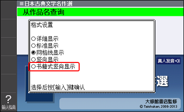 ③ー(5)按↓↑键选择“书籍式竖向显示”或“书籍式横向显示”后按[输入]键。