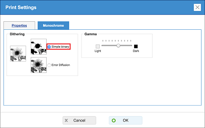 (3) Click the "Monochrome" tab and then select "Simple binary."