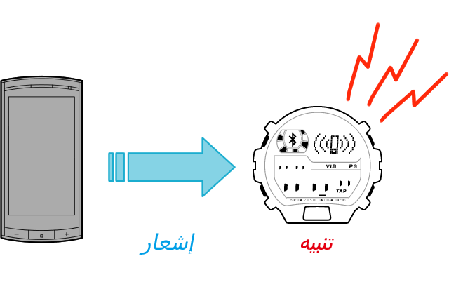 ستخبرك الساعة عندما يتم تلقي رسائل SNS (Twitter وFacebook وWeibo) على الهاتف. وسيعلمك ذلك أيضًا عندما يتم تسجيل تنبيه لحدث مسجّل في التقويم على الهاتف.