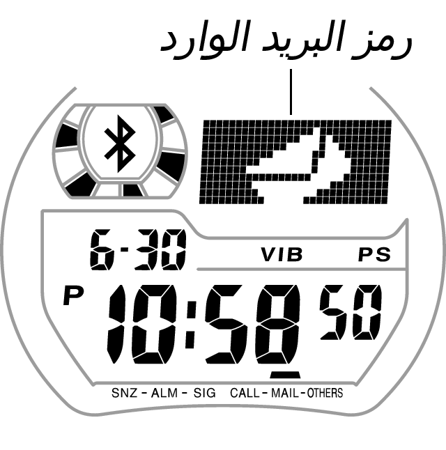 عندما ينبّه الهاتف الساعة بورود اتصال أو بريد أو رسائل SNS أو منبه تقويم، ستصدر الساعة إشارة صوتية و/أو تهتز، وسيظهر مؤشر على شاشة الساعة.*