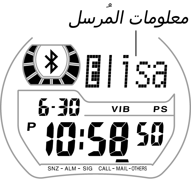في وضع عرض التوقيت، يمكنك الضغط على الزر A لإعادة عرض آخر إشعار تلقته الساعة من الهاتف.