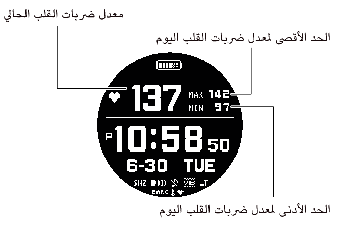 TIME+HR: الوقت الحالي + معدل ضربات القلب