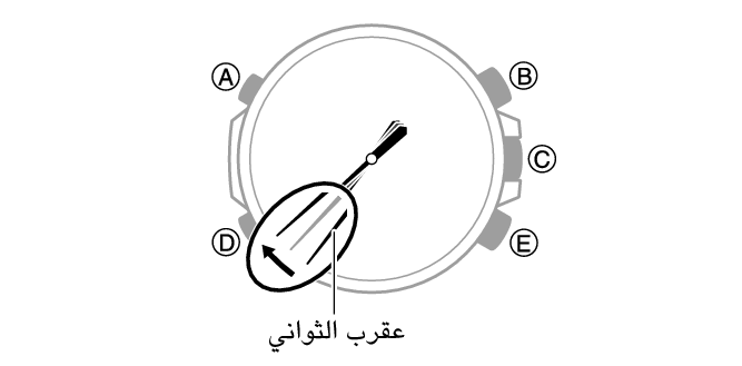 في وضع عرض التوقيت، يتحرك عقرب الثواني بفترات قدرها ثانيتين. تعمل وظائف الساعة الأخرى بشكل طبيعي.