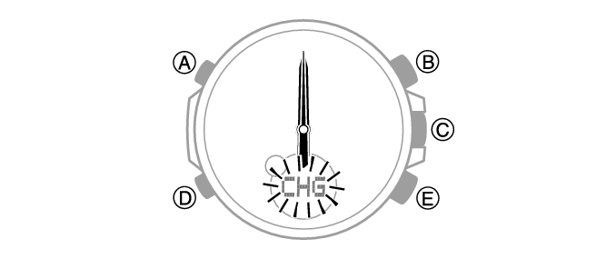 إذا انخفض مستوى الطاقة أكثر من ذلك بعد، فستتوقف العقارب عند موضع الساعة 12 وسيومض [CHG].