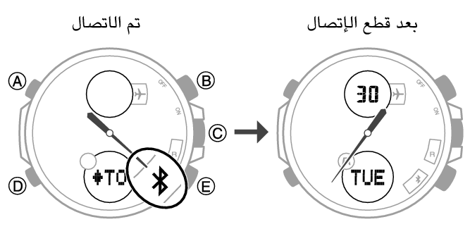 إذا كانت الساعة متصلة بهاتف، اضغط على (C) لإنهاء الاتصال. -