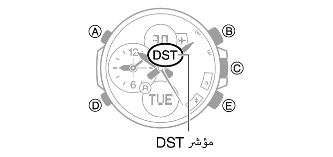 - إذا كنت لا تريد تغيير إعداد وقت الصيف، اضغط مرتين على (A) للخروج من شاشة الإعداد.