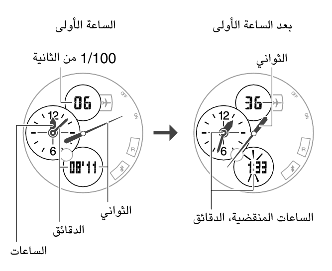 1.استخدم عمليات التشغيل المبينة أدناه لقياس الوقت المنقضي.