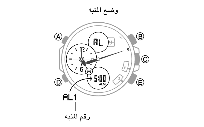 قم بهذا الإجراء في وضع المنبه. استخدم (D) للانتقال إلى وضع المنبه.