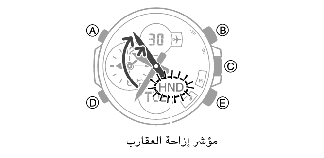 - يومض مؤشر إزاحة العقارب عند إزاحة هذه الأخيرة.