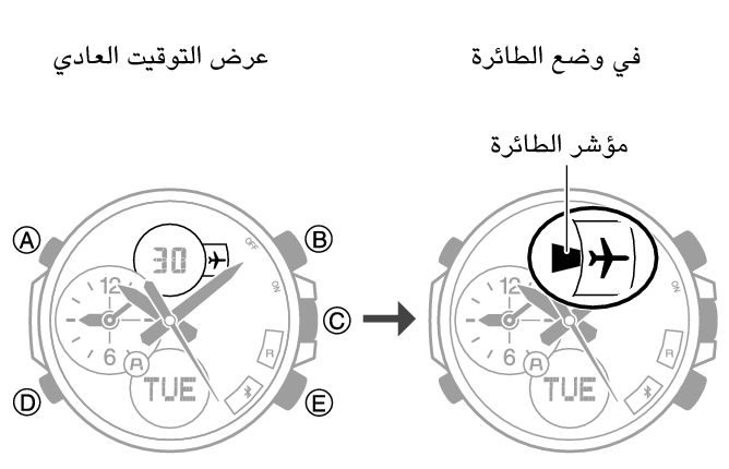 - يخضع استخدام هذه الساعة داخل الطائرة لقوانين الطيران لكل بلد. تأكد من اتباع إرشادات كادر الخطوط الجوية.