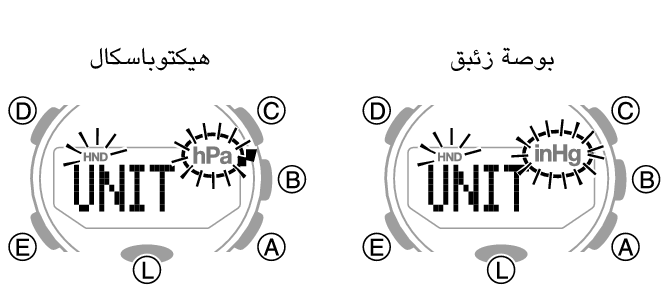 يؤدي هذا إلى ظهور [UNIT] ووميض [hPa] أو [inHg].