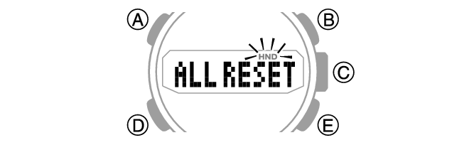 4.اضغط باستمرار ولأسفل على (B) لمدة خمس ثوانٍ على الأقل. حرر الزر عندما يتوقف [RESET] عن الوميض.