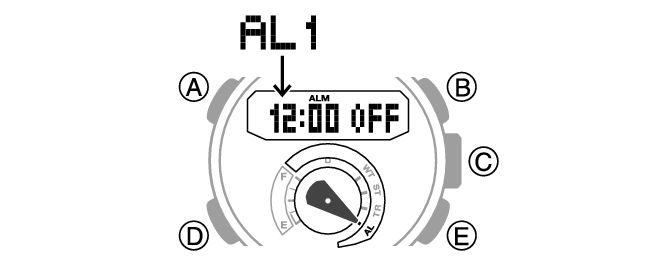 2.استخدم (E) للتمرير عبر شاشتَي أرقام المنبّهات (من [AL1] إلى [AL5]) وإشارة الوقت بالساعة ([SIGNAL]) إلى حين ظهور الرقم الذي تريد تغيير إعداده.