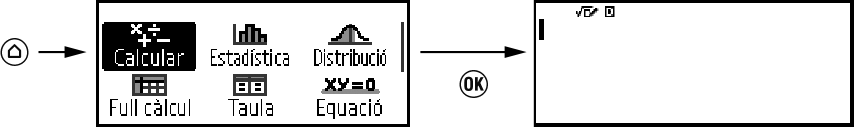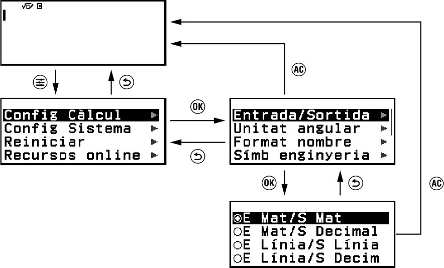 Algunes de les operacions d’aquesta calculadora es realitzen mitjançant els menús. El següent exemple mostra operacions a partir de la pantalla de menú que apareix en prémer