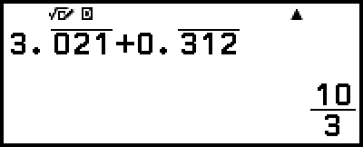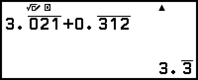 i, a continuació, seleccioneu [Dec periòdic] en el menú FORMAT que apareix. Per a l’operació real, vegeu “Exemple de càlcul de decimal periòdic”.