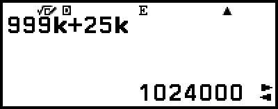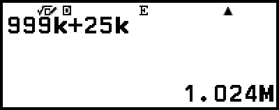 示例 2:计算 999k (千) + 25k (千) = 1.024M (兆) = 1024k (千) = 1024000
