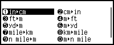 此操作将显示单位换算类别*菜单。