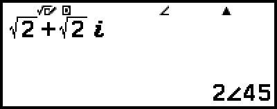 示例 9:√2 + √2i = 2∠45, 2∠45 = √2 + √2i