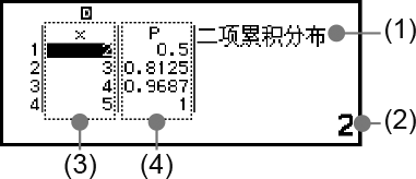 如果在步骤 3 中选择 [列表],计算结果(P 列)将在列表界面上显示。详细信息,请参见“分布计算列表界面”。