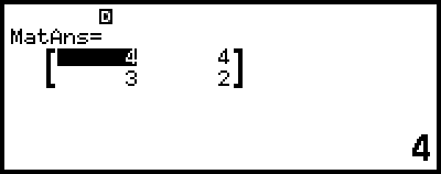 此操作将显示 MatAns(矩阵答案存储器)界面,其中会显示计算结果。
