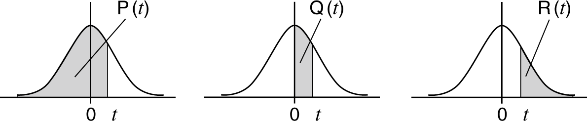 P(, Q(, R( ...这些函数使用自变量 t,并按下图所示计算标准正态分布的概率。