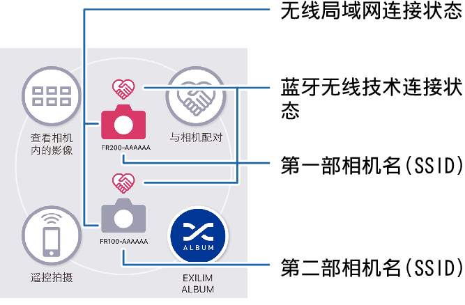 可以使用EXILIM ConnectTop画面查看相机当前的连接状态。