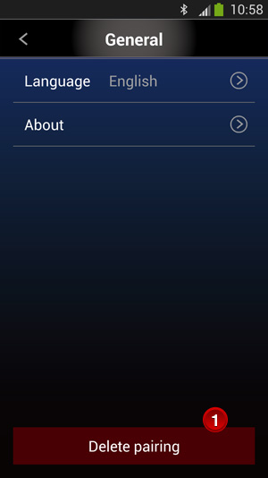 G-SHOCK+ 应用程序的顶部菜单中,依次点击以下项:“一般”-“取消匹配”。此操作将清除G-SHOCK+ 应用程序的配对信息。2 返回至“主屏幕”,然后向下滑动状态条,以便显示通知面板。