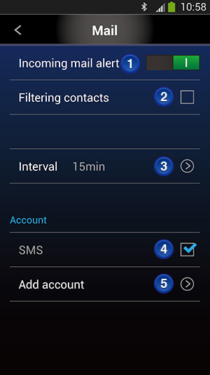 ・ON:联系人筛选打开(仅提示联系人邮件。)