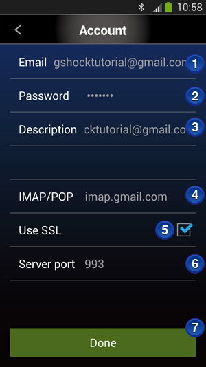 | Gmail | @gmail.com | imap.gmail.com | ON | 993 |