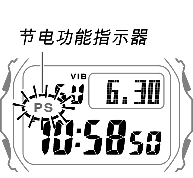 如果手表未在大约 1 小时内移动或执行按钮操作,将会触发节电功能。以下内容介绍了手表处于“节电功能”模式时的情况。