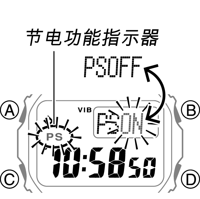 • 屏幕上到底显示 [PSON](节电功能开启)还是 [PSOFF](节电功能关闭)将取决于当前的节电功能设定。