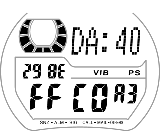 当显示取消所有配对确认屏幕时(在手表设备名称屏幕出现之前),松开 B 按钮会取消“取消与所有手机的配对”操作。如您执行此操作,那么,在您按下 B 按钮之前显示的配对存储位置码的配对信息会被清除。 - 显示屏将在如下所示的屏幕之间循环切换。