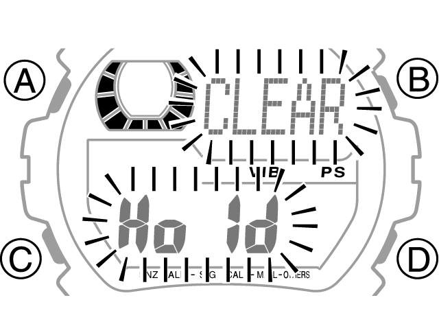 - 按住 B 按钮,直到手表显示屏从“CLEAR(清除)”变为“[NEW](新)”。一出现“[NEW](新)”即松开 B。