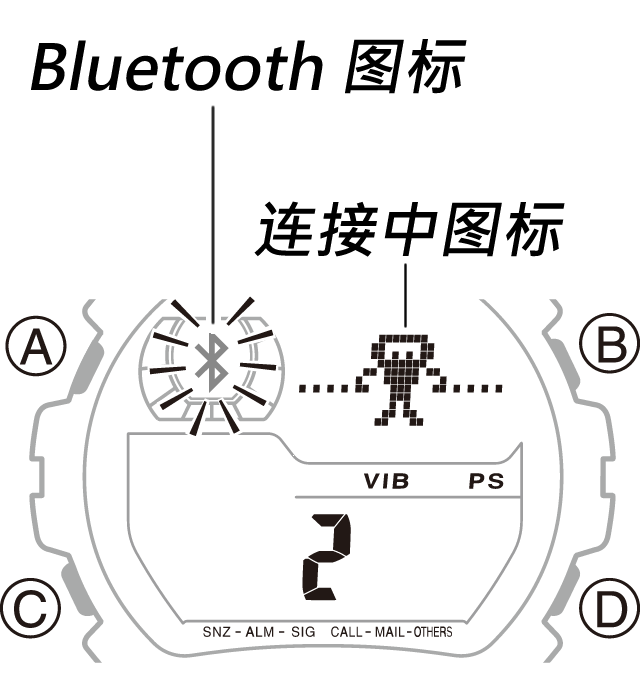 - 如 Bluetooth 图标显示在手表上,则进入“计时模式”然后按住 B 按钮约 2 秒直至该图标消失