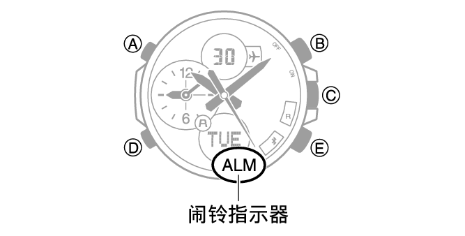 [SET] 将出现,然后会显示当前闹铃时间,同时闪烁时钟数字。