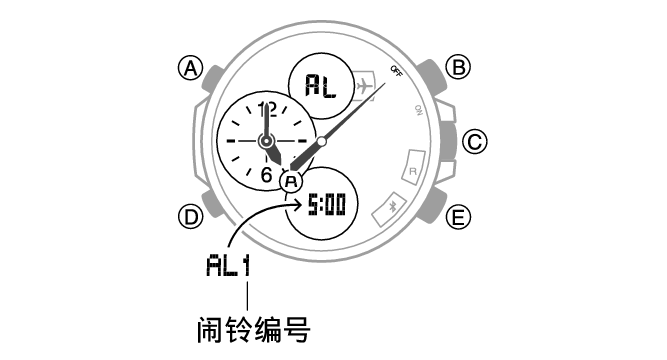 1.按 (E) 以滚动浏览闹铃编号(从 [AL1] 至 [AL5]),直至显示您要配置的闹铃编号。
