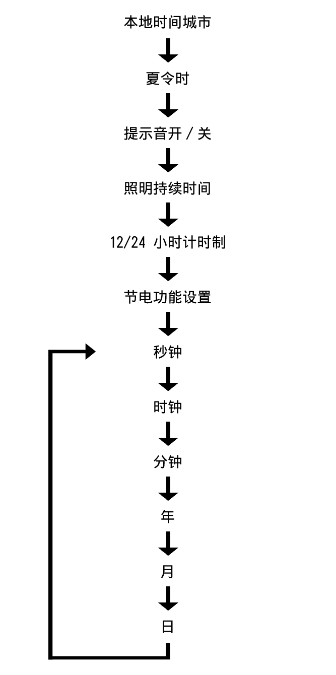 每次按 (D) 都会以下列顺序循环显示“计时模式”设置屏幕内容。