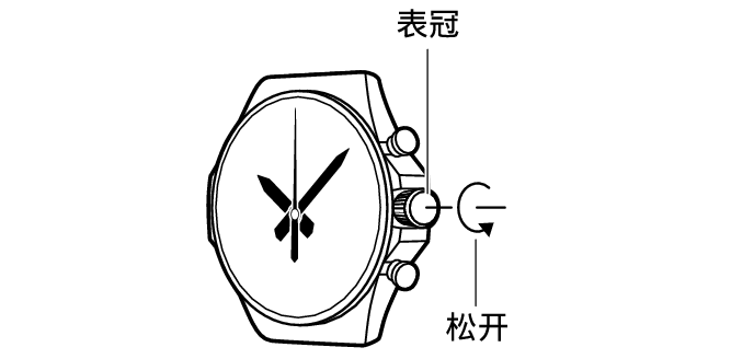使用表冠 手表的表冠是旋入(防脱落螺丝)式的。要使用表冠,必须首先将表冠向您(向左)旋转以松开。 执行表冠操作前,您需要将表冠拉出至第一段或第二段。请勿在拉出表冠过程中用力过度。 正常计时状态 第一段 第二段 快进/快退 拉出表冠后,连续沿任一方向快速旋转将启动快进或快退操作。在快进操作期间,再次连续迅速旋转表冠将进一步加快速度。 快退操作的速度是固定的,不能更改。 停止快进/快退 沿与当前操作相反的方向旋转表冠或按任何按钮。