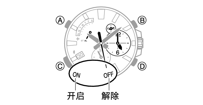 每次按下(B)将会在闹铃开关之间切换。