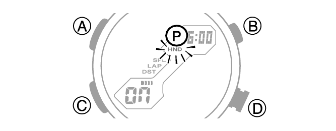 按住(A)至少两秒。小时数字开始闪烁时,松开按钮。