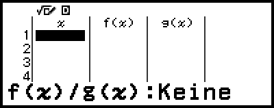 Sie können die Einstellungen des Wertetabellen-Bildschirm so konfigurieren, dass Spalten für f(x) und g(x) oder für eine der beiden angezeigt werden. Um es einzustellen verwenden Sie das Menü, das erscheint, wenn Sie