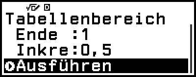 – [Neu berechnen] aus, während der Wertetabellen-Bildschirm angezeigt wird, um Werte zu aktualisieren.