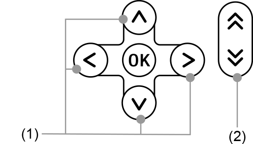 Einzelne durch (1) gekennzeichnete Cursortasten werden als