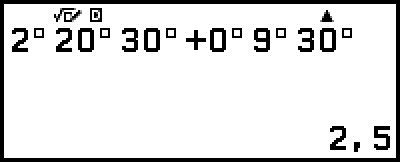 Beispiel: Ausführen der Berechnung 2°20’30” + 9’30”. Konvertieren Sie anschließend das Berechnungsergebnis in einen Dezimalwert.