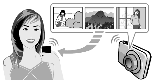 Bei einer Kamera mit Monitordisplay können Sie im Kameraspeicher eine oder mehrere Schnappschuss- und/oder Moviedateien wählen und an ein Smartphone senden. Ein Bild, das Sie an das Smartphone gesendet haben, kann dann über ein soziales Netzwerk an andere weitergeschickt werden.
