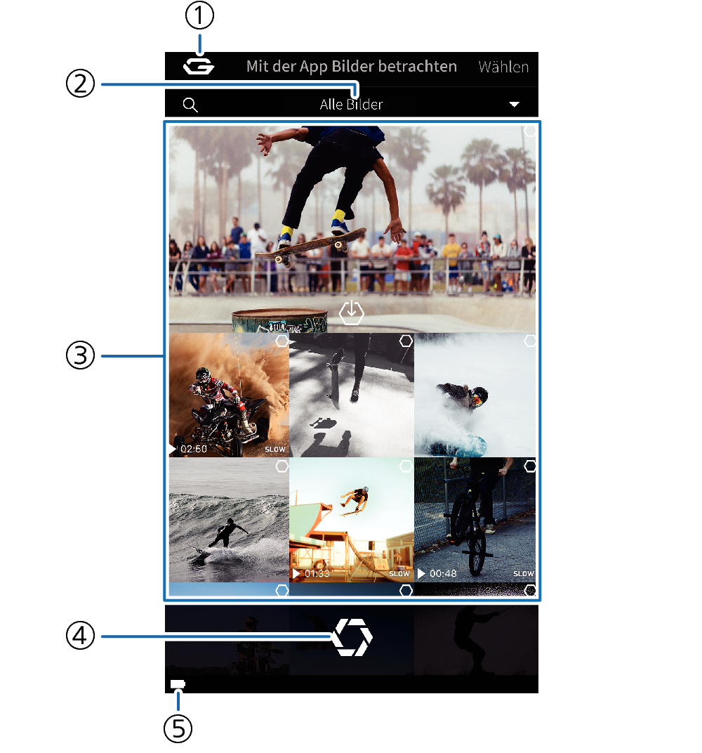 Mit dem nachstehenden Vorgehen können Sie Bilder aus dem Kameraspeicher auf einem Smartphone betrachten und Bilder manuell von der Kamera an das Smartphone senden.