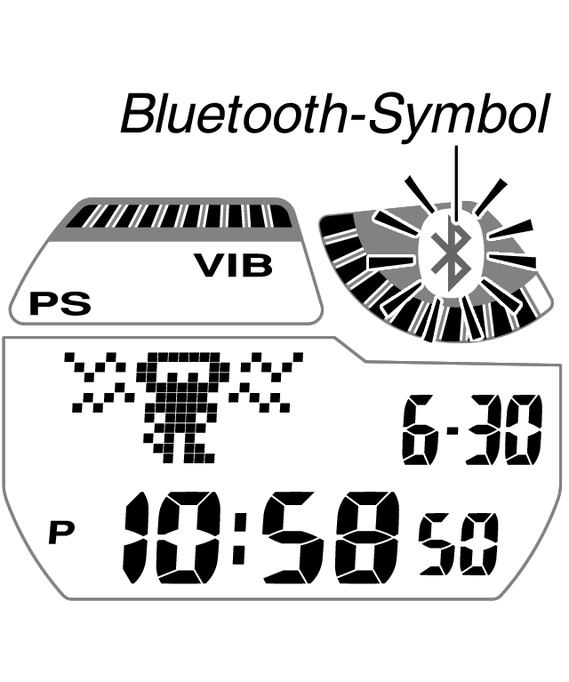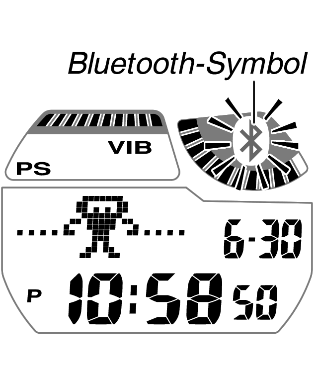 Wenn das Telefon nahe an die Uhr gebracht wird, während das Bluetooth-Symbol blinkt, wird innerhalb von etwa einer Minute* eine erneute Verbindung hergestellt, und das Symbol hört auf zu blinken.