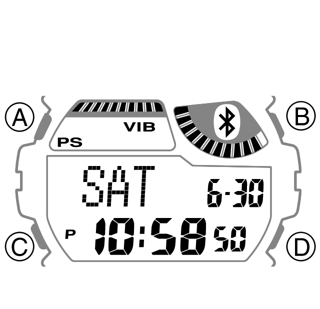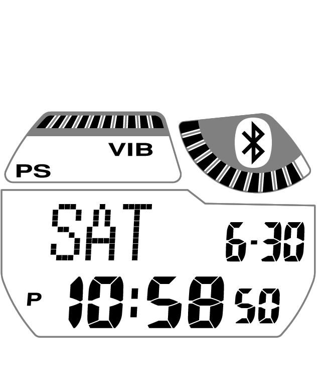 - Halten Sie im Uhrzeitmodus B ungefähr zwei Sekunden lang gedrückt, bis das Fenster links angezeigt wird.