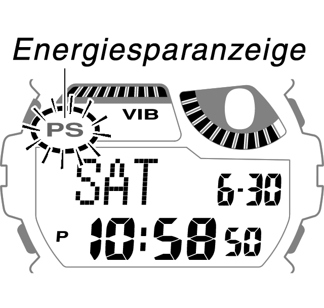 Der Energiesparmodus wird ausgelöst, wenn die Uhr ungefähr eine Stunde lang nicht bewegt und keine Taste gedrückt wird. Im Anschluss wird erläutert, was passiert, wenn sich die Uhr im Energiesparmodus befindet.