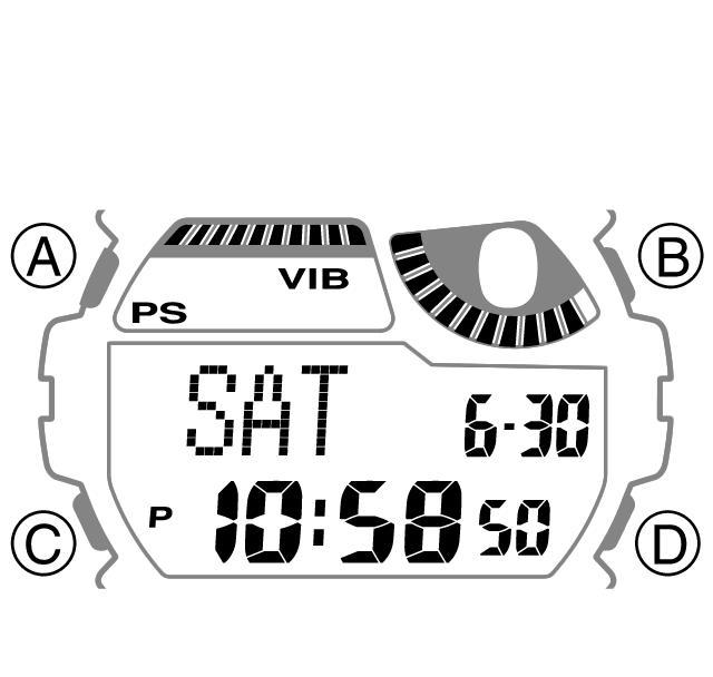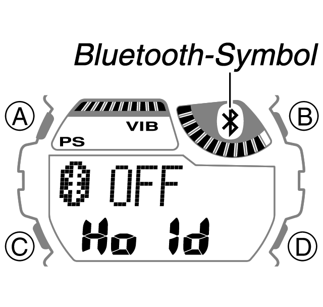 - Halten Sie im Uhrzeitmodus B ungefähr zwei Sekunden lang gedrückt, bis das Bluetooth-Symbol nicht mehr auf dem Display zu sehen ist.